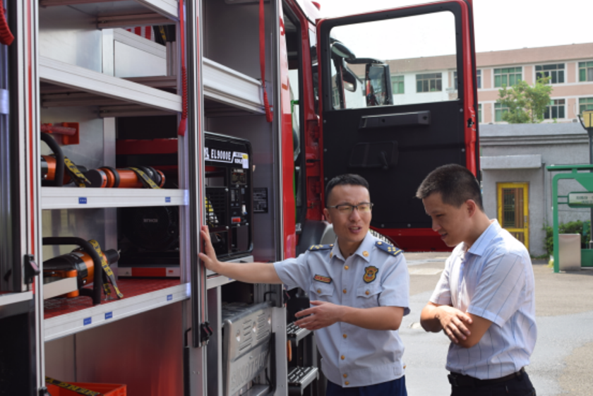 演示結束后,鎮(zhèn)政府各級領導及平陽縣大隊領導來到新購的舉升搶險主戰(zhàn)消防車前,詳 細參觀、了解消防車輛技術性能,觀摩了新型消防車輛器材的展示和車輛各種功能操作 演示,并對我公司研制的新產(chǎn)品進行了點評,給予了高度的贊許,稱此款車型最大化的 滿足了老舊小區(qū)、狹窄街道、城鄉(xiāng)低建筑物等滅火救援工作的需要。