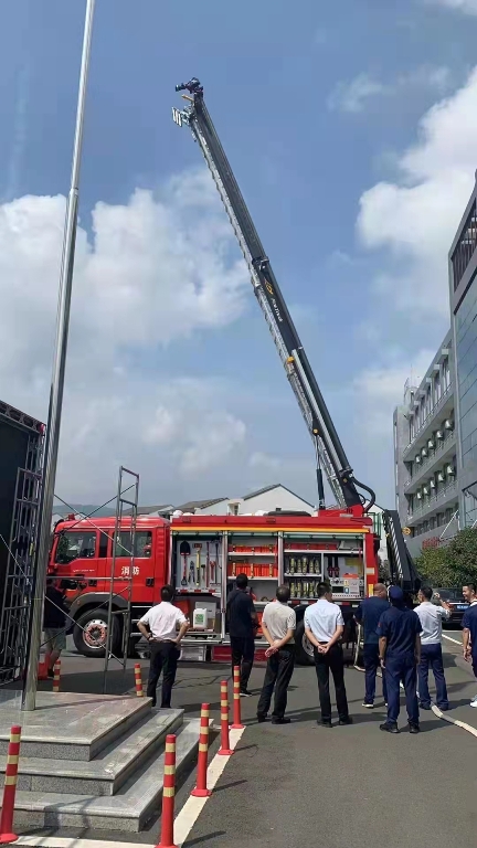 我公司王經(jīng)理介紹主戰(zhàn)車功能和技術參數(shù),現(xiàn)場演示了云梯、高噴及牽引系統(tǒng)的操作, 并對消防車的性能做了測試,完全滿足消防隊提出的性能技術指標,充分展示了我們公 司特色產(chǎn)品的技術領先。