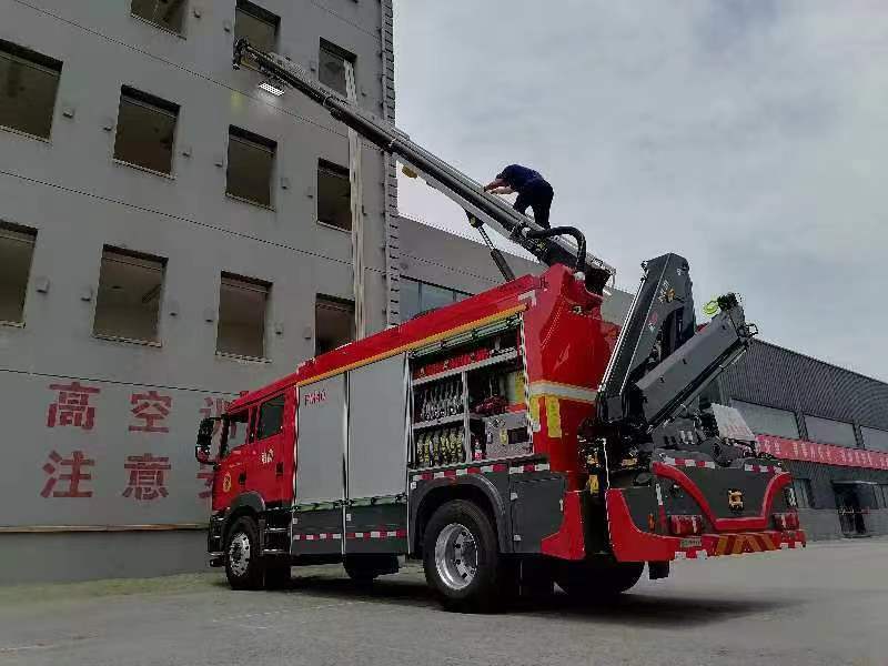 舉升搶險主戰消防車可謂是“當紅”產品,可以將搶險救援車、水罐泡沫車、高噴車三種功能組合在一起的特種車型,使用舉升臂架進行噴射時可以跨越障礙,直接射向滅火目標,特別適合城市密集小區、廠房、高速公路及隧道等火災的撲救,一車多功能的結構形式,更適合于現代的應急搶險救援部隊使用,組合式的結構形式,減少現場的占地空間,使用起來更加方便靈活,伸縮鋁合金拉梯高度可達15米,實現高空救援,隨車配備救生衣及水上救援機器人等水域救援裝備,配備大流量消防槍,可噴射水、A 類泡沫、B 類泡沫、CAFS等。