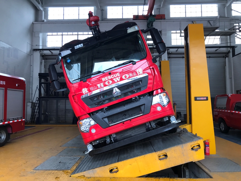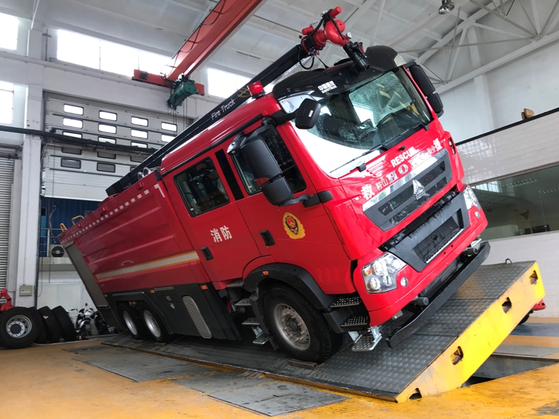 車輛底盤為豪沃ZZ5357TXFV464MF5底盤,發動機型號MC11.46-61,功率:341kw,國六排放標準,軸距4600+1400mm,罐體材質:優質碳鋼板;容罐容量:水18000kg;消防泵為上海雄真CB10/80-XZ;消防炮為威斯特PSKD60W,舉升高度10.5米。 車輛外觀造型美觀,且內部空間寬敞舒適,滿足作戰人員需求。整車器材箱卷簾門防水槽采用專用鋁合金開模型材,型材上加裝LED照明燈帶,使整車形成環繞式照明,既美觀且照明效果又好。器材箱卷簾門下部翻轉踏板,采用一體式鋁合金擠壓型材,模塊化組裝,增加了整車的品質。箱體內部器材框架采取了專用的的擋板型材,有效的保證了內部器材固定的穩定性,同時使器材標牌整齊化一,清晰明了。