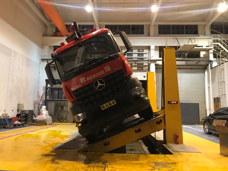車輛底盤為德國奔馳Arocs4158底盤,發動機型號OM473LA,功率:425kw,國六排放標準,軸距:1750mm+4600mm+1350mm,罐體材質:采有優質不銹鋼板304;容罐容量:水15000kg,泡沫3000kg;消防泵為美國大力,型號為ZSP2650;流量:10000L/min;負壓式泡沫比例混合器,型號為英國FSA;舉升臂頂端消防炮Ⅰ,型號:3482+5177美國阿密隆,流量80L/S,射程:水≥80m,泡沫≥70m;車體尾部消防炮Ⅱ,型號:DICODOPLUS 150法國博克,流量:10000L/M,射程:水≥110 m,泡沫≥100m,大流量消防槍,車頂前部設有舉升高度為12米的臂架。 整車器材箱卷簾門防水槽采用專用鋁合金開模型材,型材上加裝LED照明燈帶,使整車形成環繞式照明,既美觀且照明效果又好。車頂前部設有舉升高度為12米的臂架,頂端加裝有進口電控消防炮。車頂后部設有進口電控大流量消防炮。箱體內部器材框架采取了專用的的擋板型材,有效的保證了內部器材固定的穩定性,同時使器材標牌整齊化一,清晰明了。車頂兩側女兒墻內部加裝有LED照明燈帶,可滿足夜間工作人員在車頂操作時對照明需求。配備大流量消防槍,可噴射水、泡沫、等滅火介質,滅火效率極高。